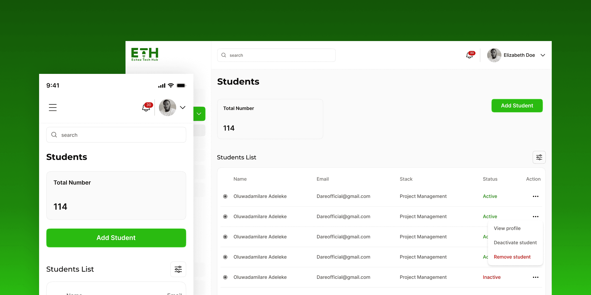 The final solution focuses on clarity, structure, and ease of use, helping Echez Tech Hub attract the right users and deliver a smoother learning experience across students, tutors, and admins.