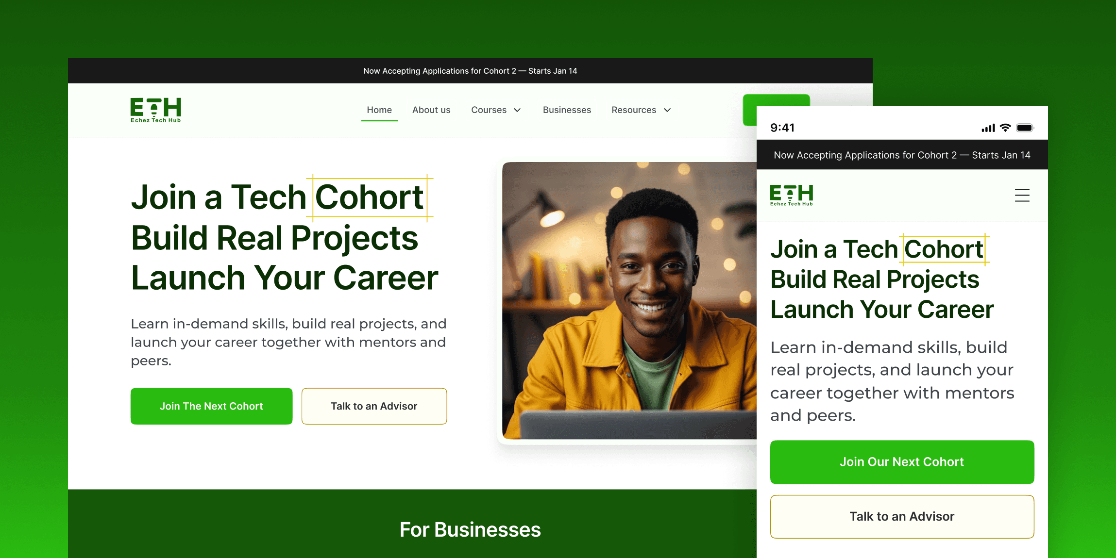 Echez Tech Hub needed a digital experience that could clearly communicate their offerings and also support their training operations. They needed centralized process for managing students, tutors, tasks, and resources, which would make learning and administration easy.
